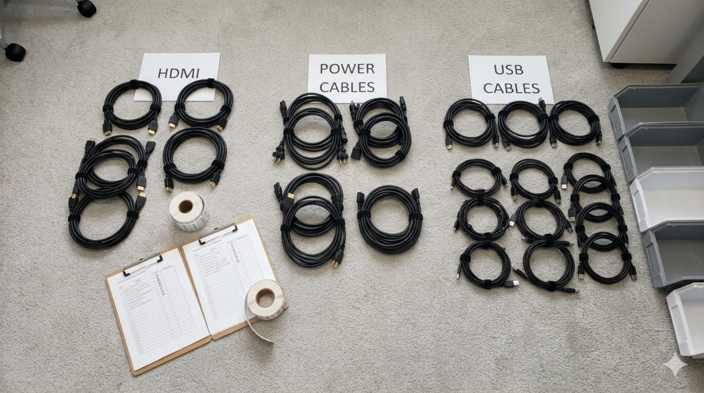 This step allows you to identify cables that are unnecessarily long or obsolete cords you no longer need, immediately reducing volume.