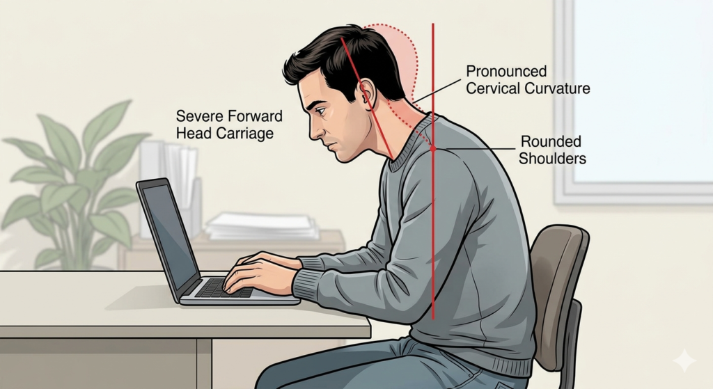 Staring at a computer screen for eight hours a day often has visible physical consequences. One of the most common and problematic is the dreaded “turtle neck” appearance. As we lean in to read small text or hunch over laptops, our heads slowly drift forward, out of alignment with our shoulders. Over time, this forward carriage becomes our default resting position.