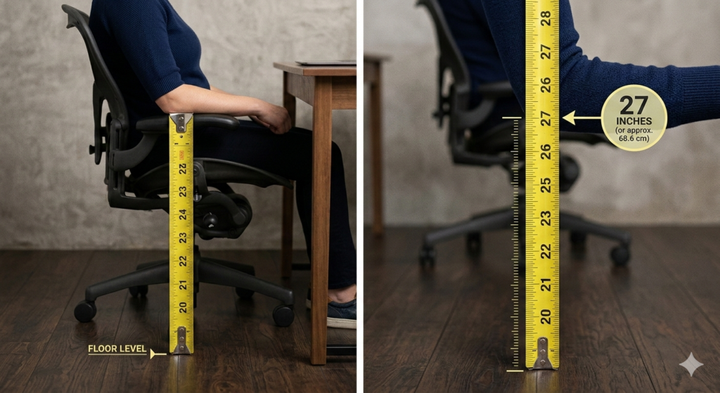 To determine your exact number, you will need a measuring tape and your current office chair.