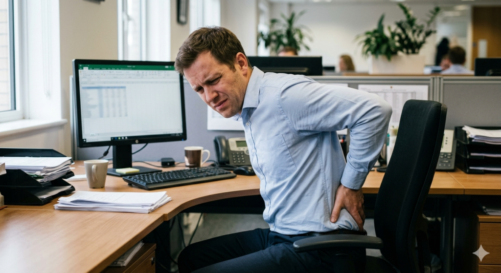 Unlike dynamic movements that allow muscles to contract and release, sitting requires continuous, static muscle exertion. Much like the cumulative damage discussed in our foundational guide on Repetitive Strain Injury (RSI): Symptoms, Prevention & Recovery, this static loading eventually starves the soft tissues of oxygen and blood flow, leading to deep, aching discomfort.