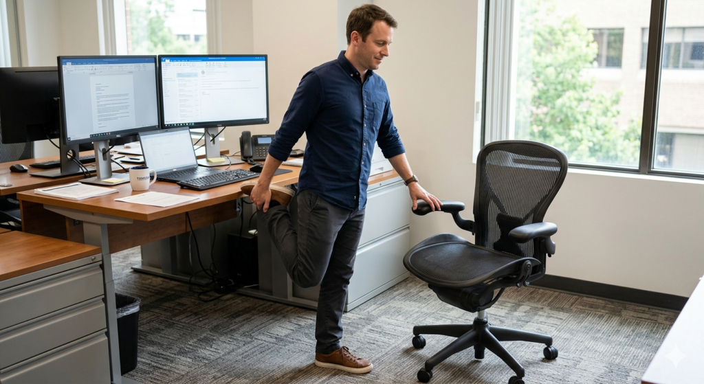 Finding sciatica relief at work requires a shift in how you interact with your desk. Nerve pain is a strict mechanical boundary; pushing through the pain will only cause further inflammation and prolong your suffering. By understanding whether your pain stems from lumbar compression or piriformis syndrome, modifying your seating to suspend the tailbone, and strictly adhering to your sitting limitations, you can actively manage the condition and maintain your productivity without agonizing discomfort.