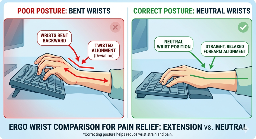 Whether you suspect nerve compression or a general strain, the immediate physical remedy is the same: stop aggravating the tissue. You must correct the physical geometry of your workspace to keep your wrists entirely neutral.