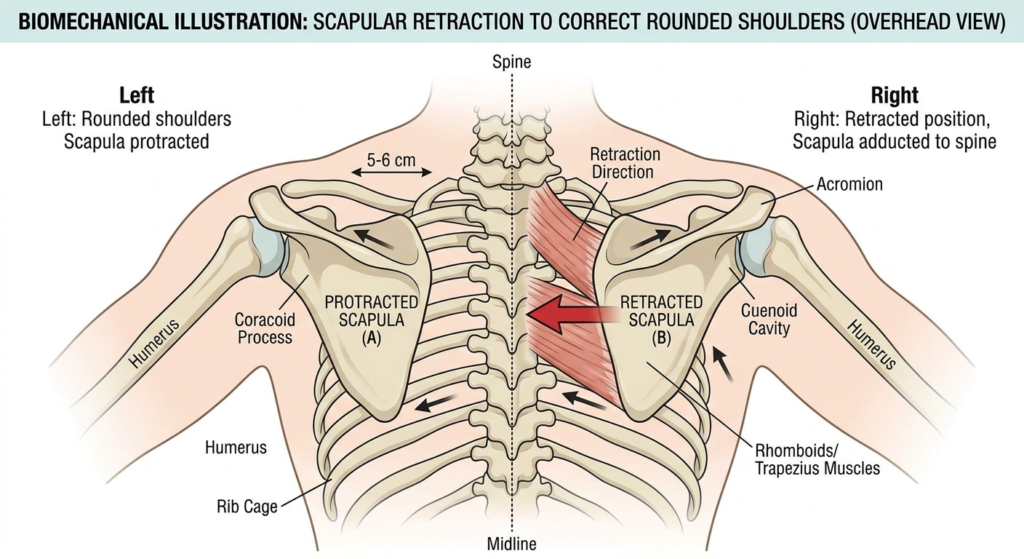 The primary mechanical antidote to this forward rotation is a movement called scapular retraction. This is the physical action of pulling your shoulder blades back and down toward your spine.